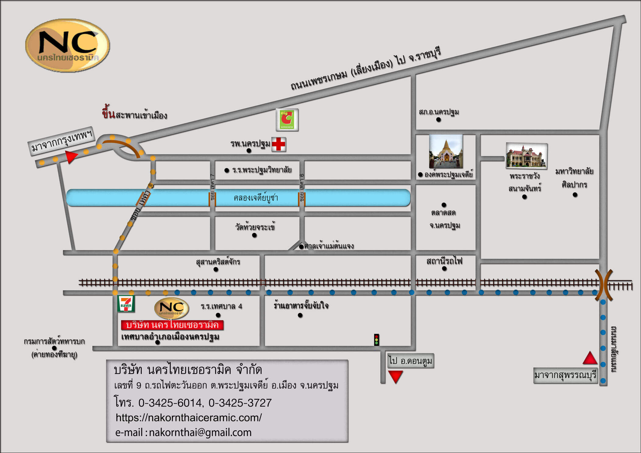 ติดต่อเรา ติดต่อเราได้ที่ บริษัท นครไทยเซอรามิค จำกัด เลขที่ 9 ถนนรถไฟตะวันออก ตำบลพระปฐมเจดีย์ (ติดกับ ร.ร.เทศบาล 4 นครปฐม) อำเภอเมือง นครปฐม 73000 โทร : สำนักงาน : 0-3425-6014 , 0-3425-3727 โทรศัพท์ : 085-917-1035 โทรสาร : 0-3424-3827 อีเมล : nakornthai@gmail.com Socials แผนที่