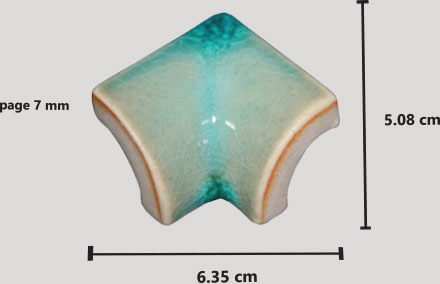 กระเบื้องมุม สำหรับใช้เป็นมุมต่างๆหรือขอบสระส่ายน้ำ มีสารเคมีอัตราการดูดซึมน้ำต่ำ* จึงสามารถใช้งานในสระว่ายน้ำ / ห้องน้ำ / ห้องครัว หรืองานตกแต่งต่างๆ ได้ทั้งภายในและภายนอกอาคาร มีเอกลักษณ์เฉพาะตัวของงานกระเบื้องทำมือ