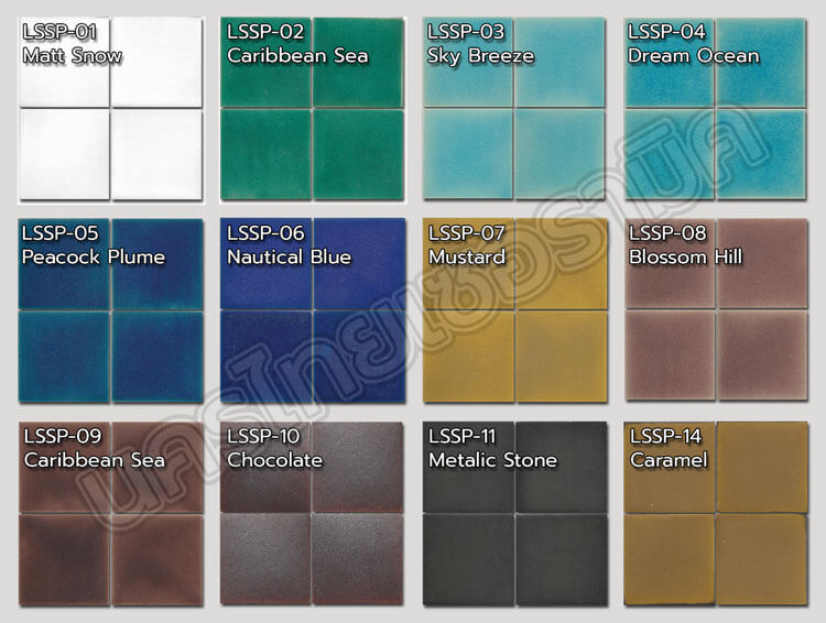 กระเบื้องมุม สำหรับใช้เป็นมุมต่างๆหรือขอบสระส่ายน้ำ มีสารเคมีอัตราการดูดซึมน้ำต่ำ* จึงสามารถใช้งานในสระว่ายน้ำ / ห้องน้ำ / ห้องครัว หรืองานตกแต่งต่างๆ ได้ทั้งภายในและภายนอกอาคาร มีเอกลักษณ์เฉพาะตัวของงานกระเบื้องทำมือ