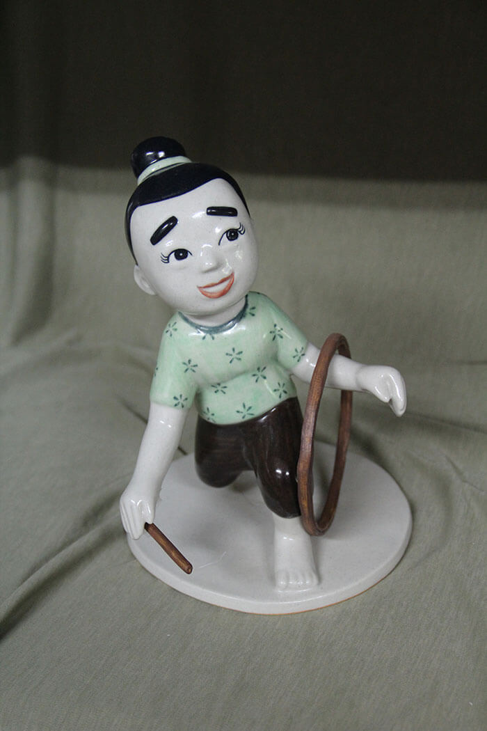CH-20 เด็กหญิงเล่นตีห่วง 2 ตุ๊กตาเซรามิค เด็กไทย